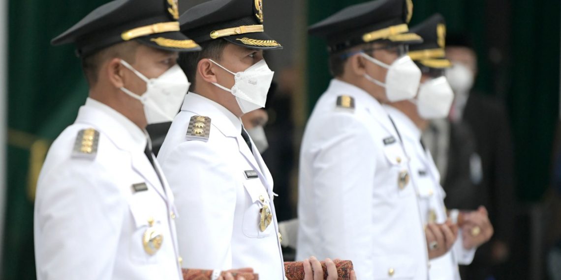 Pelantikan kedua pasangan kepala daerah hasil Pilkada Serentak 2020 dilakukan dengan protokol kesehatan COVID-19.