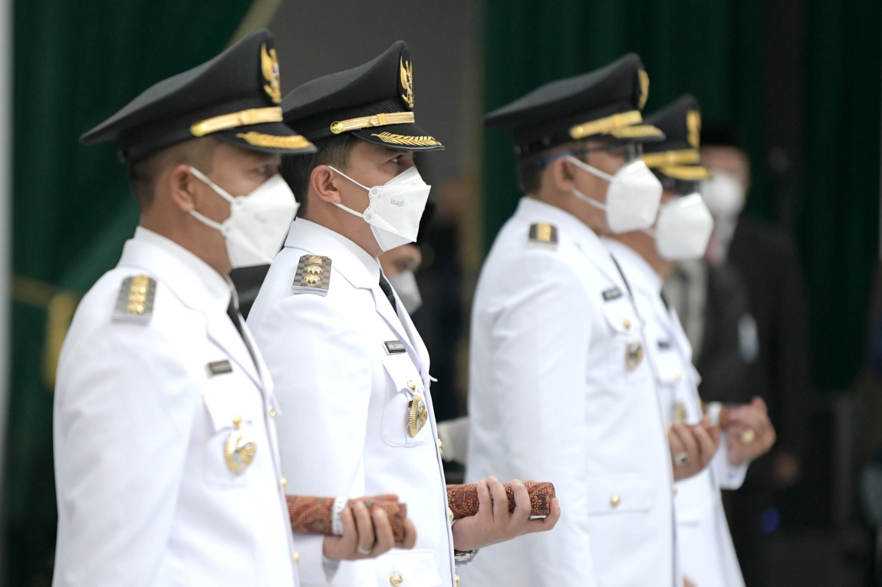 Gubernur Jawa Barat Ridwan Kamil melantik dua pasangan sebagai bupati dan wakil bupati definitif periode 2021-2026 di Gedung Sate Bandung, Senin (26/4/2021).