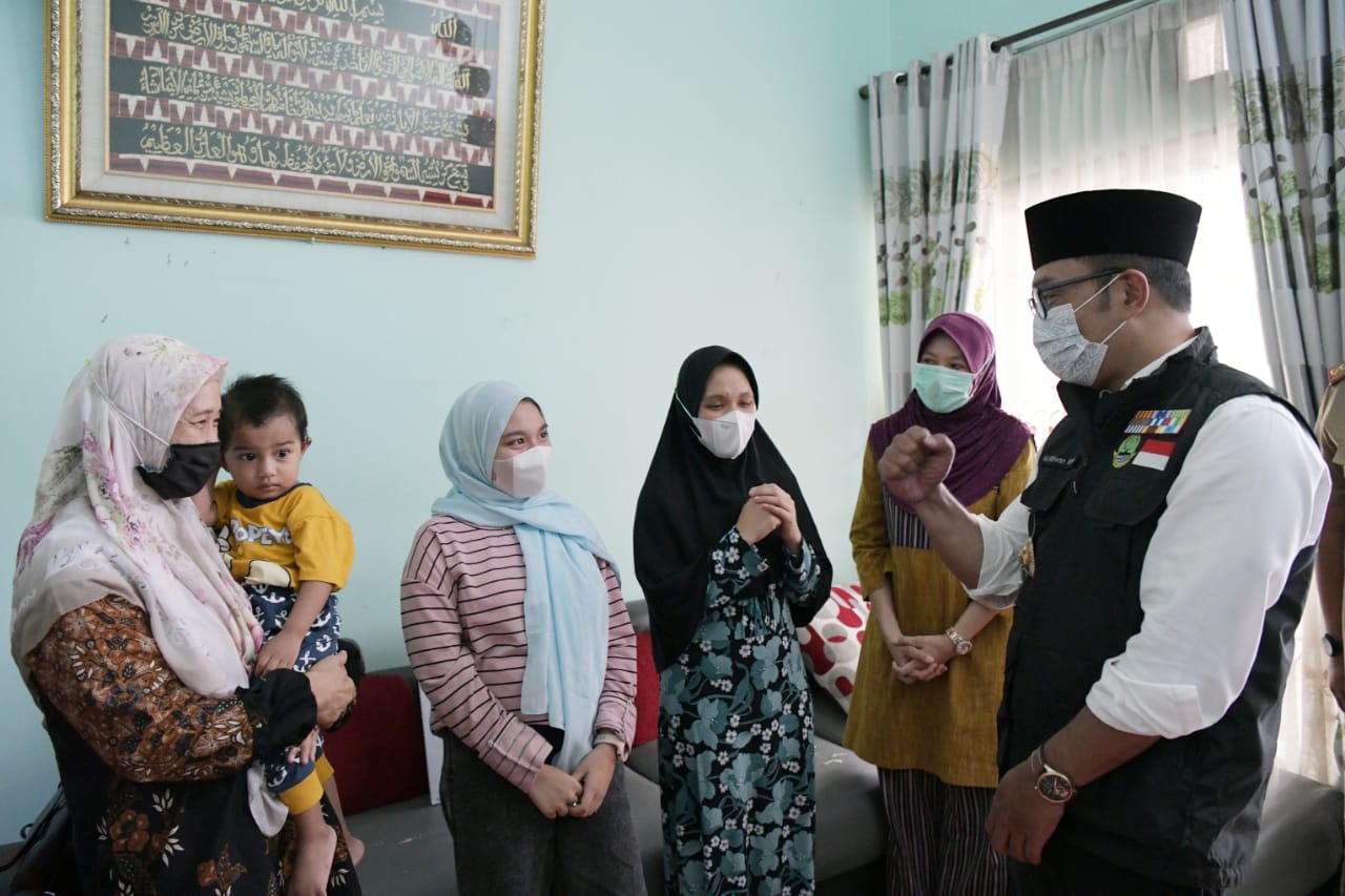 Gubernur Jawa Barat Ridwan Kamil mengunjungi rumah keluarga Kolonel Laut (E) Anumerta Irfan Suri di Perum Grand Harmoni BNR Cluster 2 Blok 9, Desa, Sukamantri, Kecamatan Tamansari, Kabupaten Bogor, Selasa (27/4/2021).