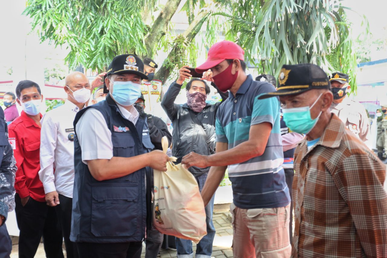 Secara simbolis subsidi barang didistribusikan oleh Wali Kota Bandung, Oded M. Danial di Kantor Kecamatan Rancasari.