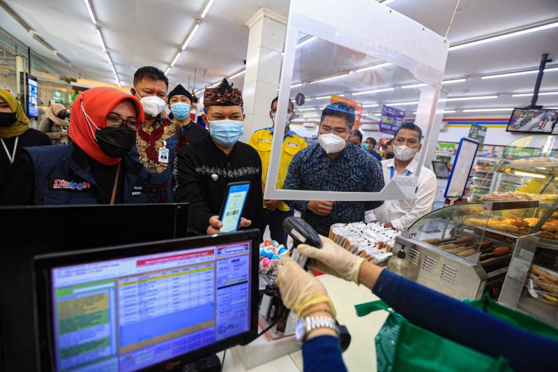 Usai peresmian, Oded menyempatkan diri meninjau gerai. Ia memilih berbagai makanan ringan khas UMKM Kota Bandung untuk dikonsumsi.