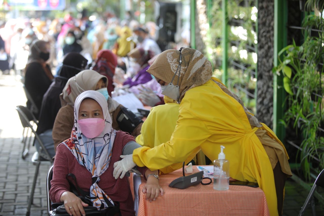 ?Sasarannya 480 untuk pendidik dan tenaga kependidikan dosis kedua, juga ada tambahan dari pegawai Bank Mandiri dan Bluebird jadi total 600 vaksin dosis kedua hari ini,? terang Evi.