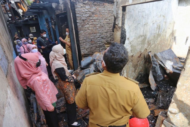 Wakil Ketua Tim Penggerak Pemberdaayaan dan Kesejahteraan Keluarga (TP PKK) Kota Bandung, Yunimar Mulyana mengunjungi sejumlah warga yang menjadi korban kebakaran di Jalan Astanaanyar Gang Entit RT 04 RW 04 Kelurahan Nyengseret, Kecamatan Astanaanyar, Kota Bandung, Senin 21 Juni 2021.
