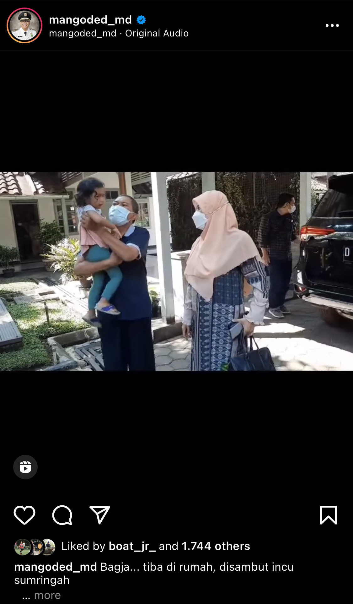 Melalui laman instagramnya @mangoded_md, Oded mengunggah sebuah video kepulangannya dari rumah sakit, Kamis 29 Juli 2021.