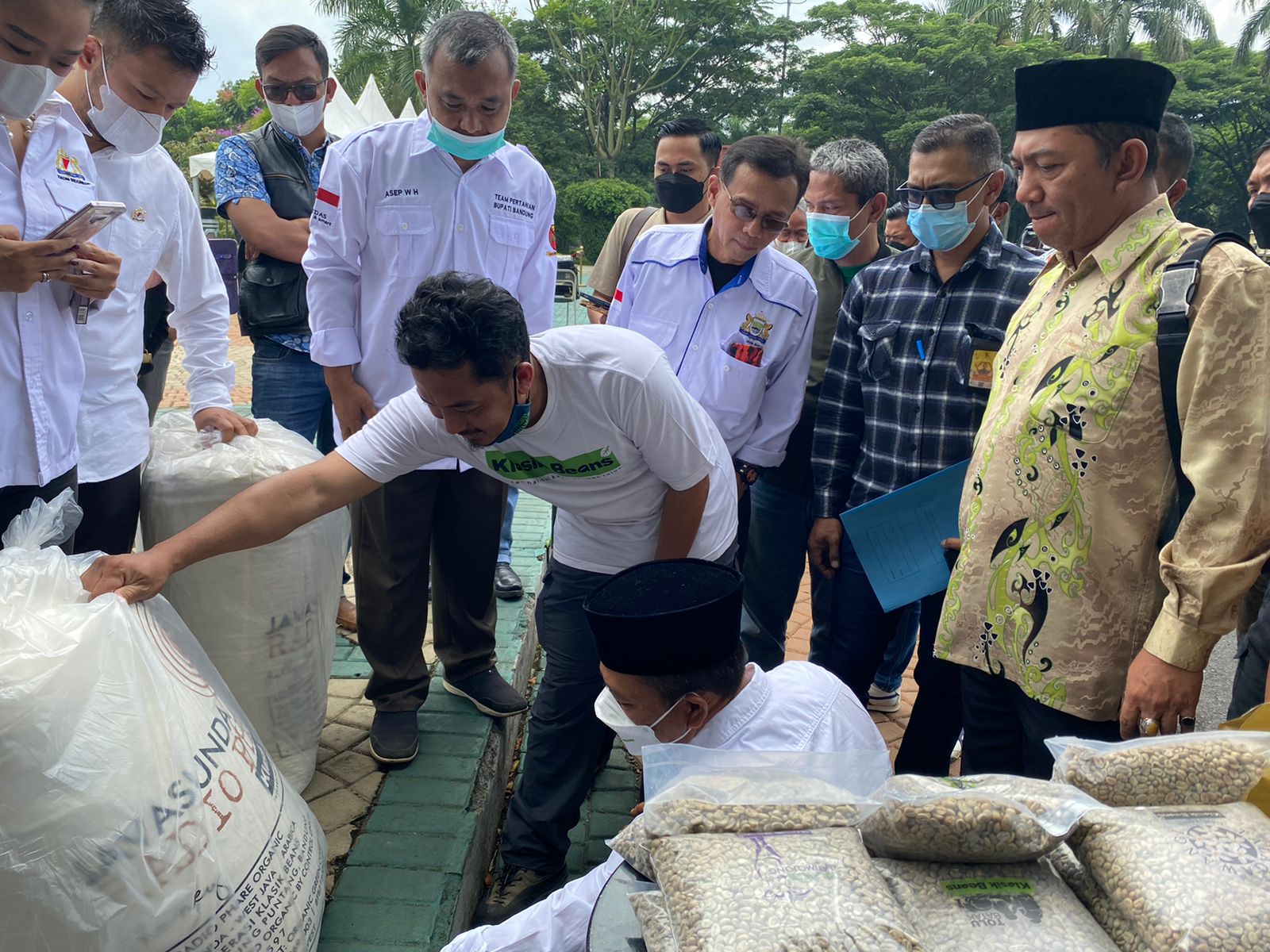 Pelepasan ekspor kopi dilakukan Bupati Bandung Dadang Supriatna, Sabtu 30 Oktober 2021, di Lapangan Upakarti Pemkab Bandung. Turut mendampingi Ketua Umum Kadin Indonesia Provinsi Jabar Tubagus Raditya.
