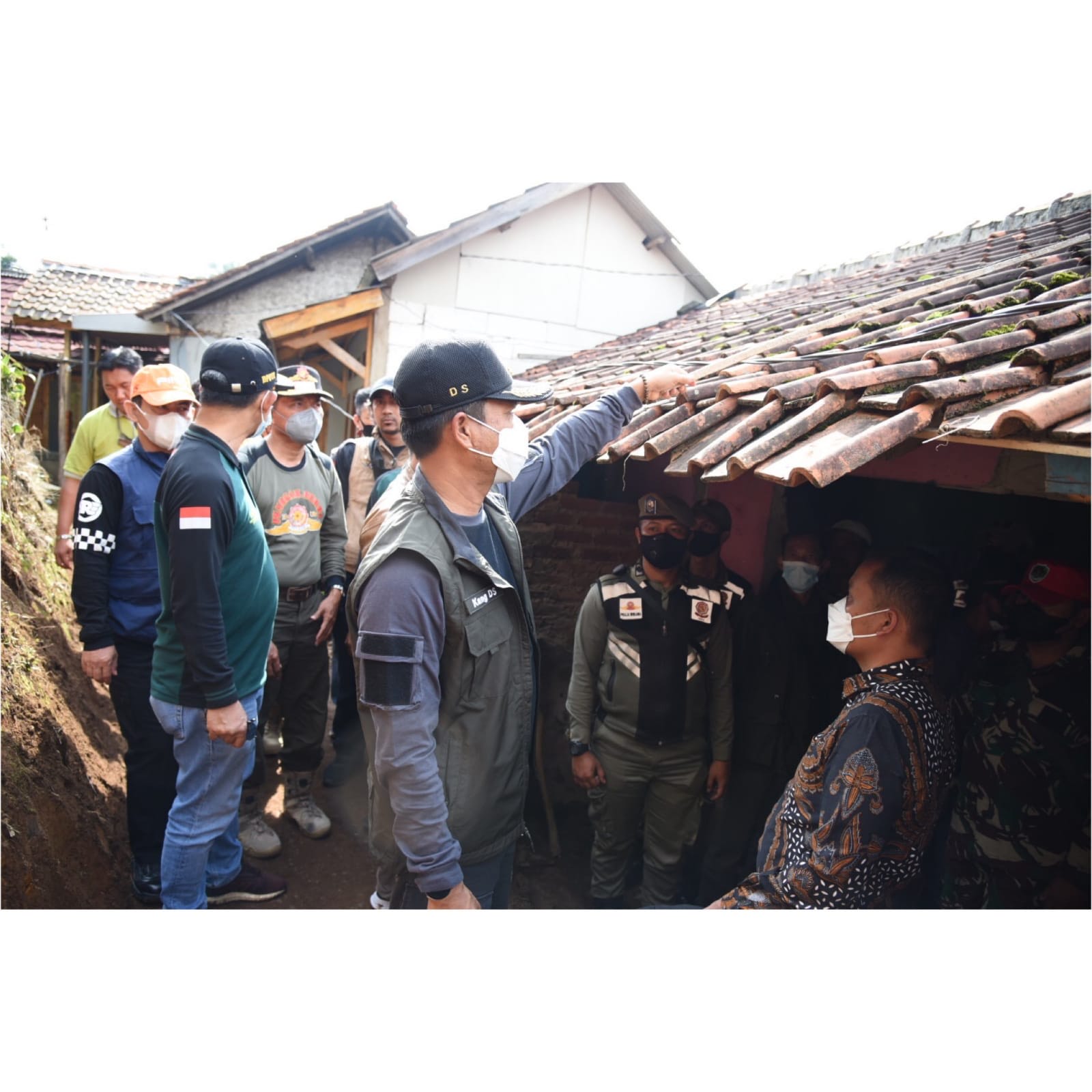 Bupati Bandung Dadang Supriatna melakukan peninjauan lokasi terdampak bencana longsor di Desa Margamulya dan Desa Pulosari, Pangalengan, Sabtu (6/11/2021).