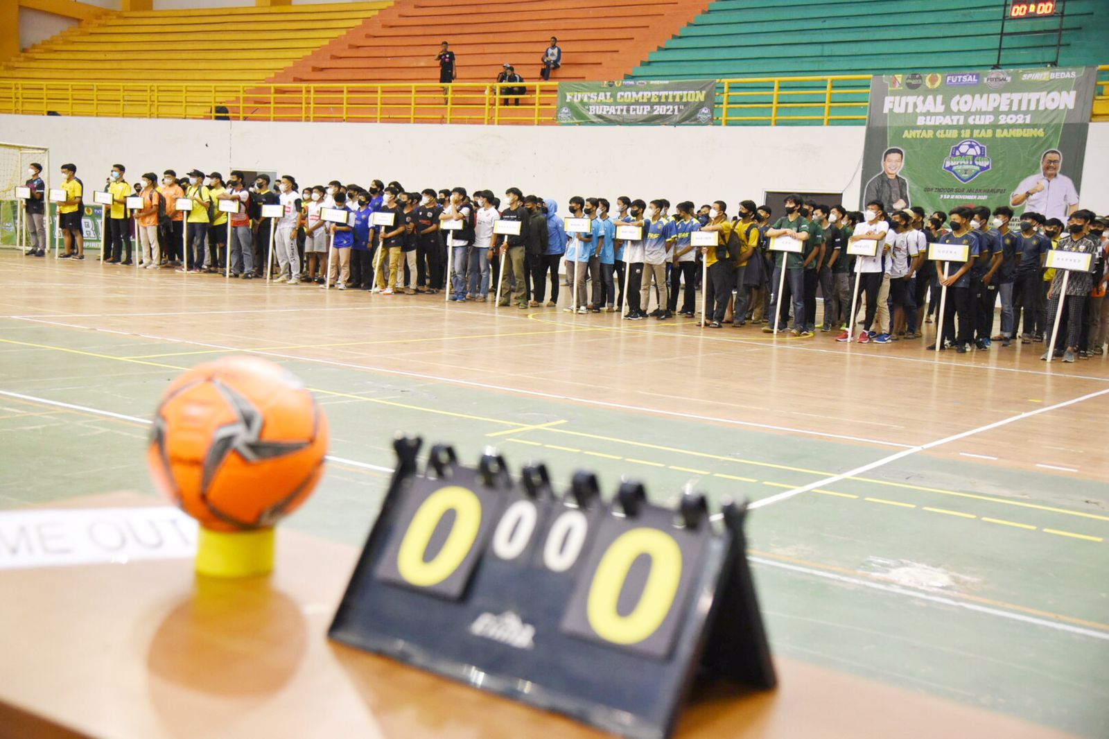 Sekretaris Daerah (Sekda) Kabupaten Bandung Cakra Amiyana membuka secara resmi Kompetisi Futsal U-19 Bupati Cup 2021 di SOR Si Jalak Harupat, Kutawaringin, Selasa (9/11/2021). Kejuaraan tersebut diikuti sebanyak 35 klub futsal yang sudah terdaftar di Asosiasi Futsal Kabupaten (Afkab) Bandung.