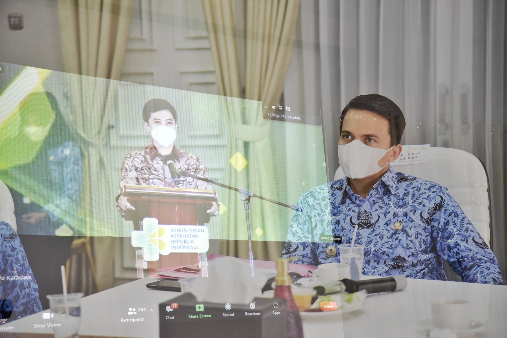 Penghargaan tersebut diterima langsung Wakil Bupati (Wabup) Bandung Sahrul Gunawan secara virtual di Rumah Jabatannya, Soreang, Rabu (17/11/2021).