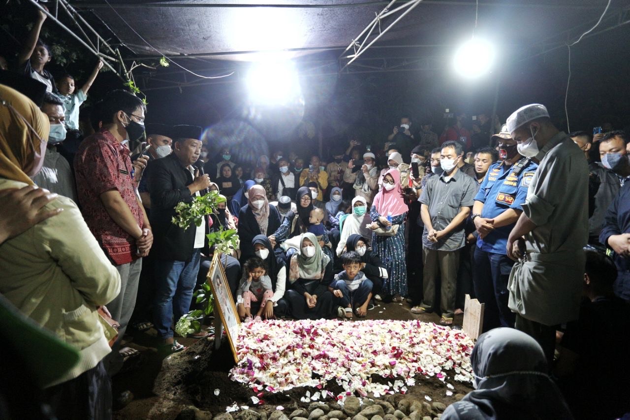 Meski dengan terbata-bata, Wakil Wali Kota Bandung, Yana Mulyana menyampaikan penghormatan terakhir di samping pusara kompatriotnya tersebut.
