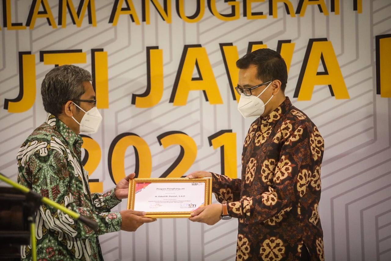Penghargaan tersebut diterima oleh Asisten Perekonomian dan Pembangunan, Eric M. Attauriq pada acara Malam Anugerah IJTI Pengda Jawa Barat 2021, di Hotel Grand Preanger Jalan Asia Afrika, Senin 13 Desember 2021.