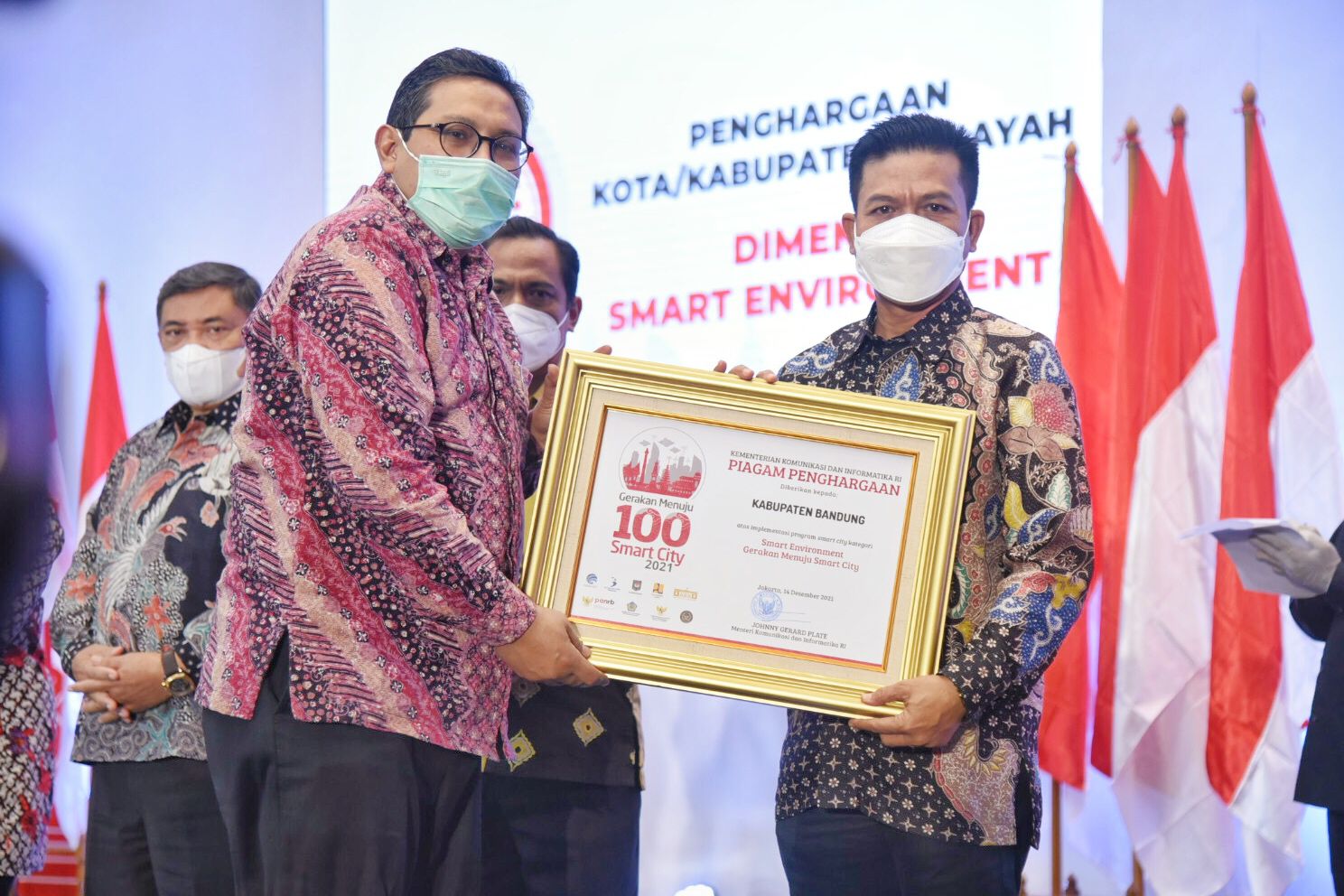 Melalui peran bupati, Pemerintah Kabupaten (Pemkab) Bandung diganjar penghargaan smart city untuk Dimensi Smart Environment.