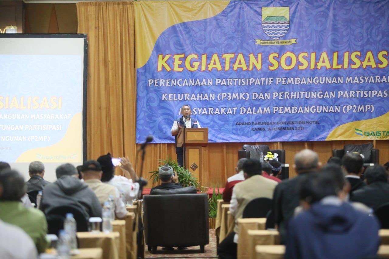 Hal tersebut diungkapkan Plt Wali Kota Bandung, Yana Mulyana saat memberikan sambutan pada kegiatan sosialisasi perencanaan partisipatif pembangunan masyarakat kelurahan (P3MK) dan perhitungan partisipasi masyarakat dalam pembangunan (P2MP) di Grand Pasundan Convention Hotel Jalan Peta, Kamis 16 Desember 2021.