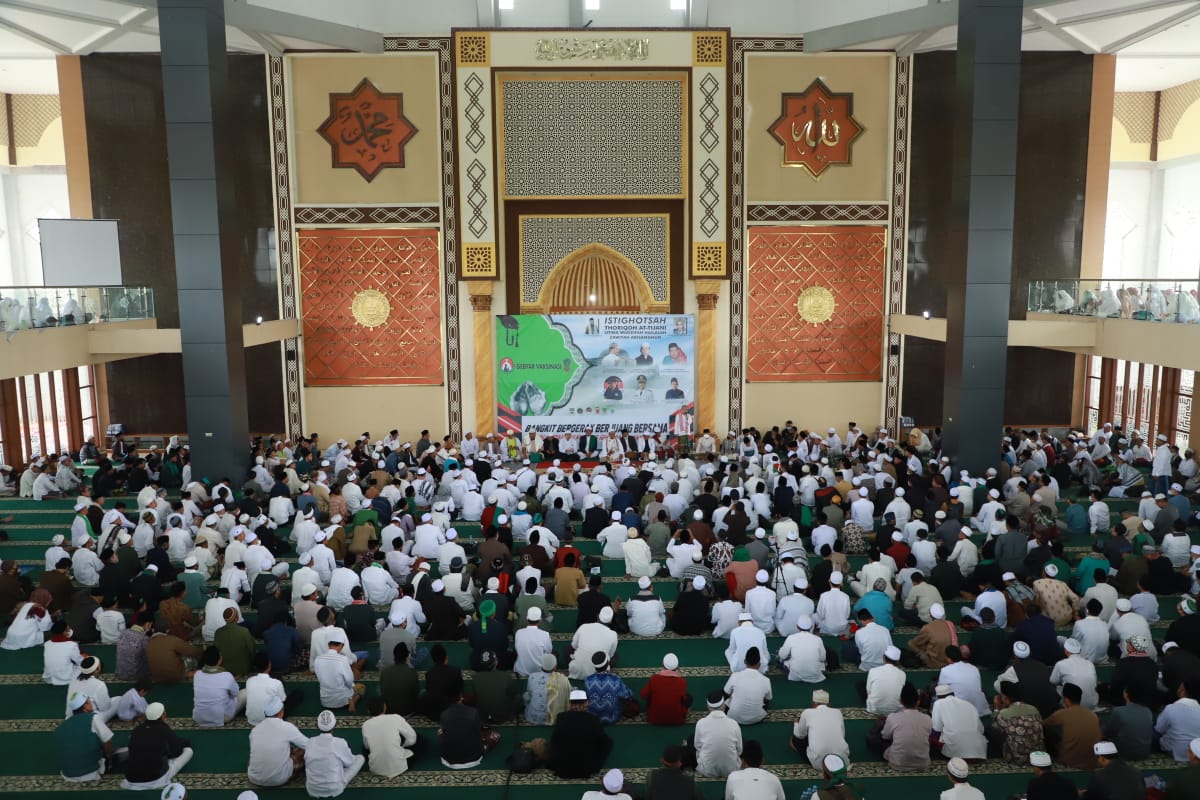 BANDUNG? – Keluarga Besar P24 Majelis Muhammadinil Fatihi menggelar kegiatan dzikir, doa bersama, gebyar vaksinasi Covid-19 dan istighasah di Masjid Ash Shiddiq Kompleks Pemda Kabupaten Bandung Barat (KBB), Jumat (14/1/2022). Kegiatan tersebut sebagai momentun di awal 2022 agar pulih dari pandemi Covid-19.