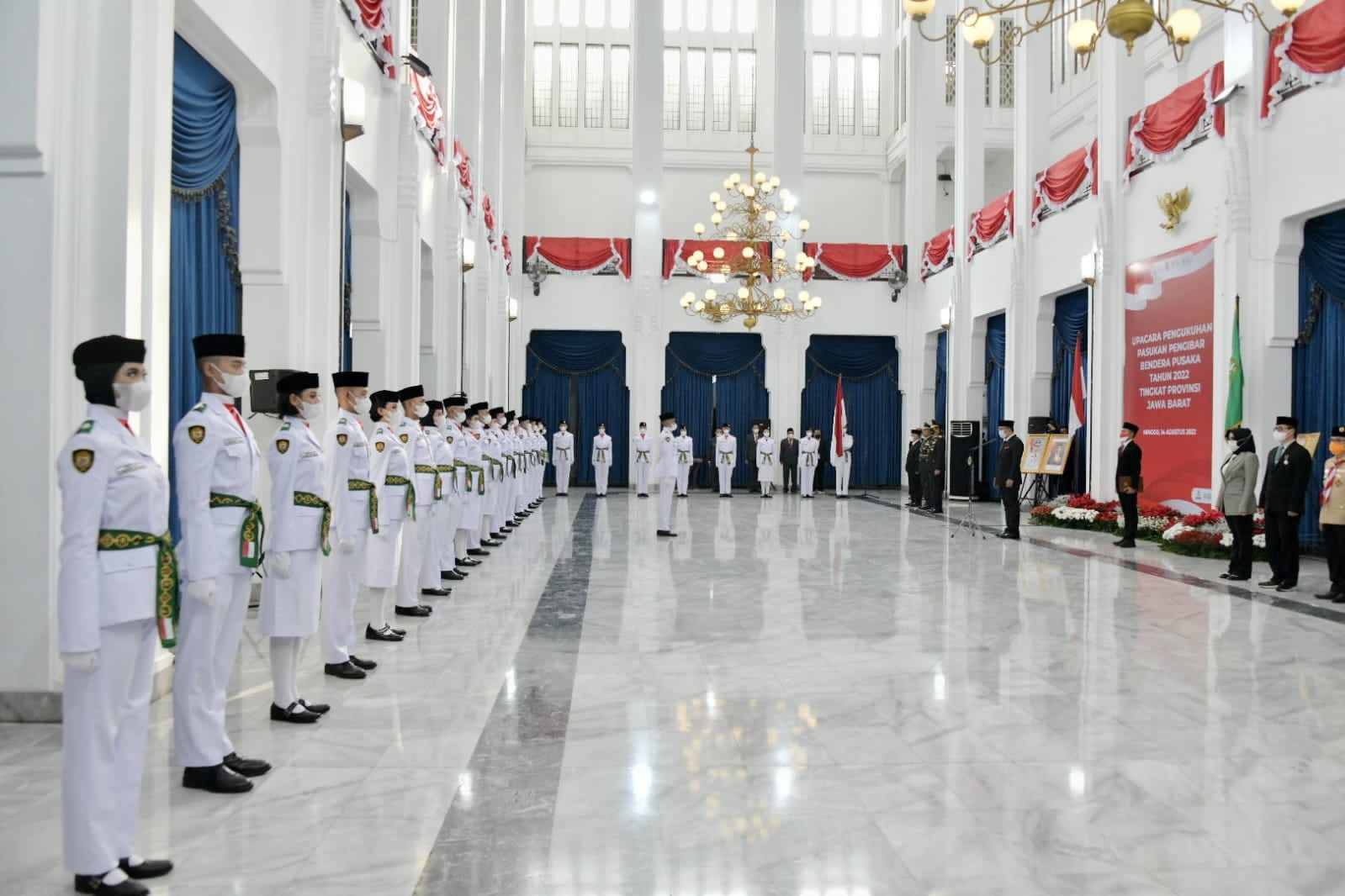 BANDUNG – Gubernur Jawa Barat Ridwan Kamil mengukuhkan Pasukan Pengibar Bendera Pusaka (Paskibraka) Tingkat Jabar Tahun 2022.