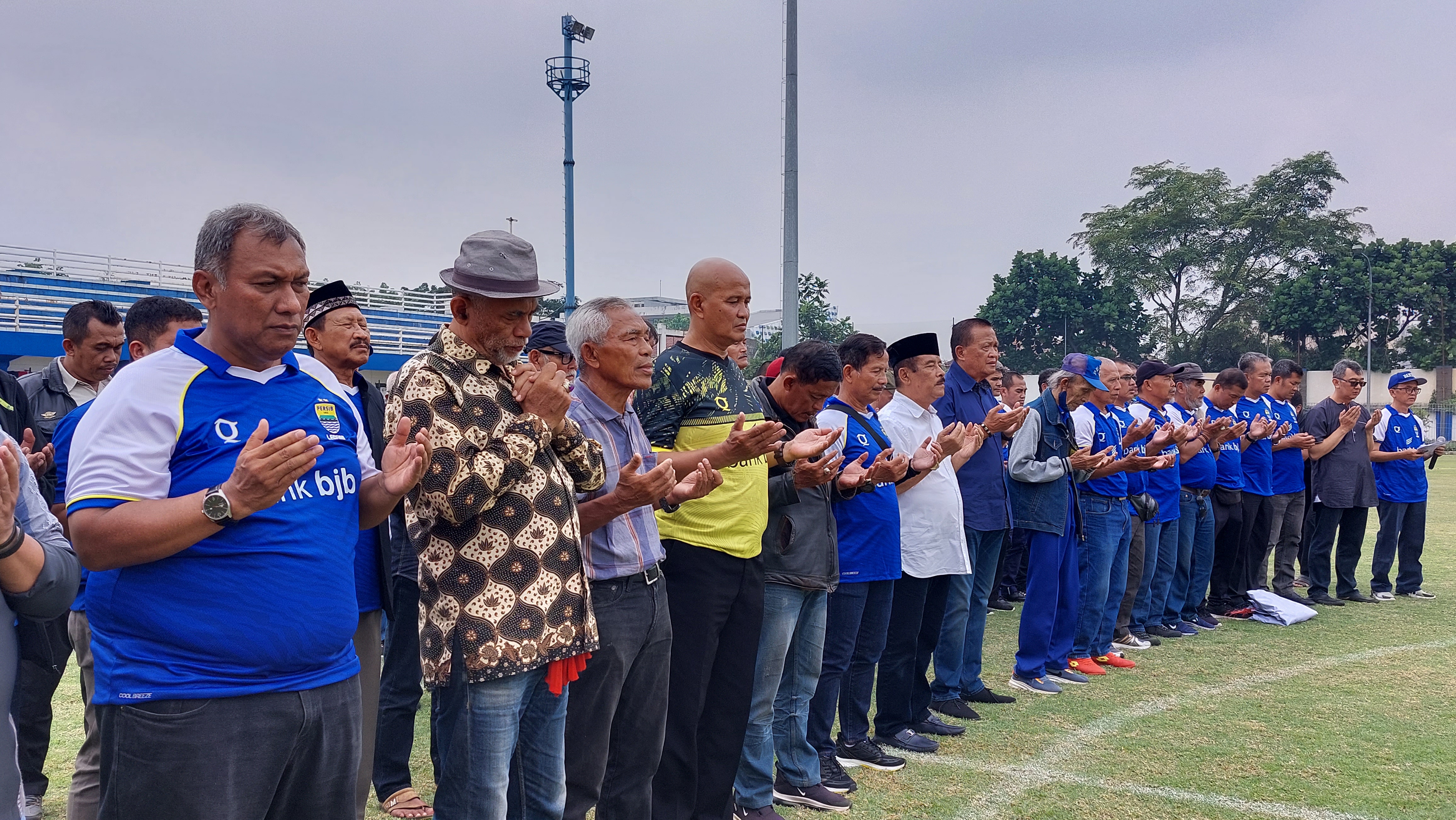 BANDUNG – Mantan Pemain Persib Bandung melakukan doa bersama dan salat gaib untuk korban jiwa akibat Tragedi Kanjuruhan, di Stadiun Persib Jalan Ahmad Yani, Jumat 7 Oktober 2022.